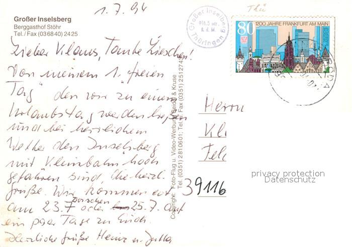 73123465 alte Postkarte Grosser Inselsberg Berggasthof Stoehr postalisch gelaufen Erhaltung siehe scans [PaolaD17] KatCode: 11110016066014