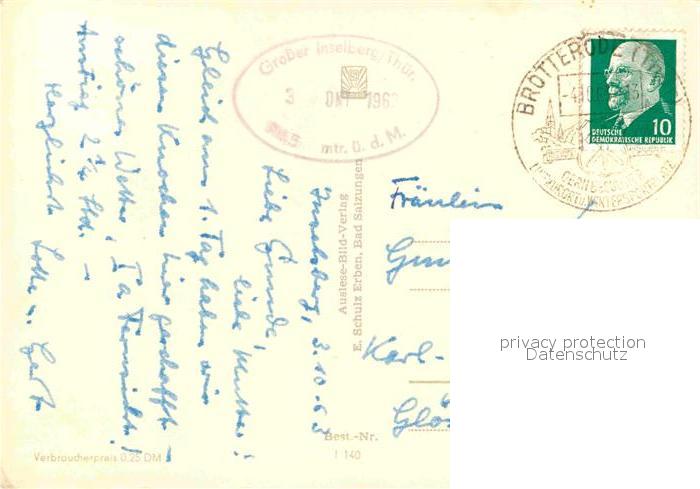 72729646 alte Postkarte Grosser Inselsberg Berghotel Gaststaette Sender Turm postalisch gelaufen Erhaltung siehe scans [FriedD77] KatCode: 11110016066014