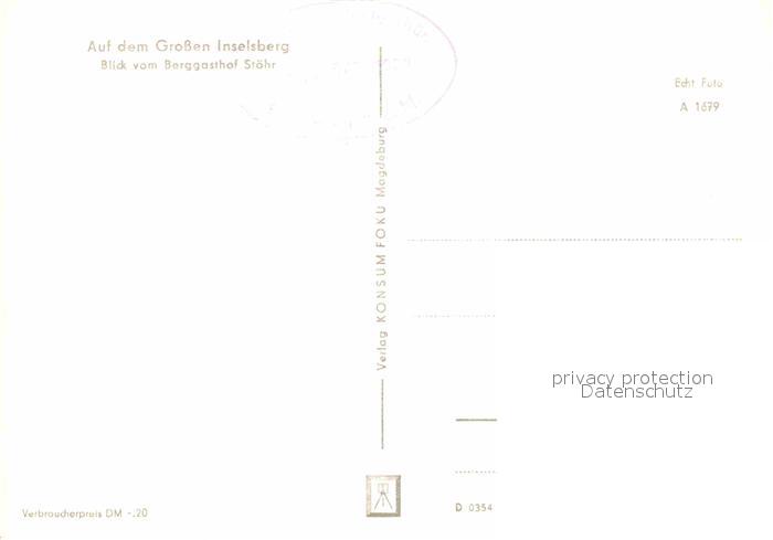 72709197 Grosser Inselsberg Blick vom Berggasthof Stoehr postalisch nicht gelaufen Erhaltung siehe scans [LiesaD40] KatCode: 11110016066014