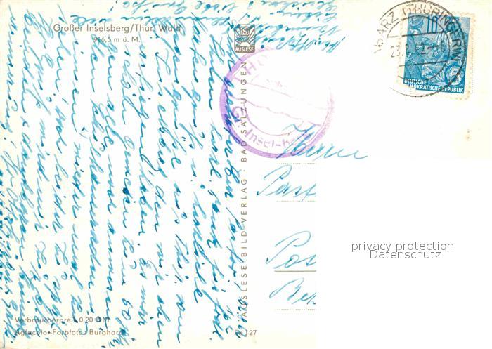 72627746 alte Postkarte Grosser Inselsberg Fernmeldeanlagen Gasthaus postalisch gelaufen Erhaltung siehe scans [WerneD78] KatCode: 11110016066014