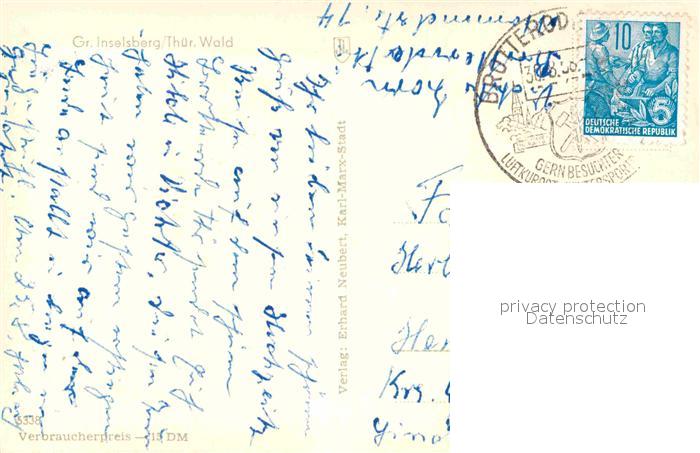 72920157 alte Postkarte Grosser Inselsberg Gaststaette Stoehr postalisch gelaufen Erhaltung siehe scans [WerneD78] KatCode: 11110016066014