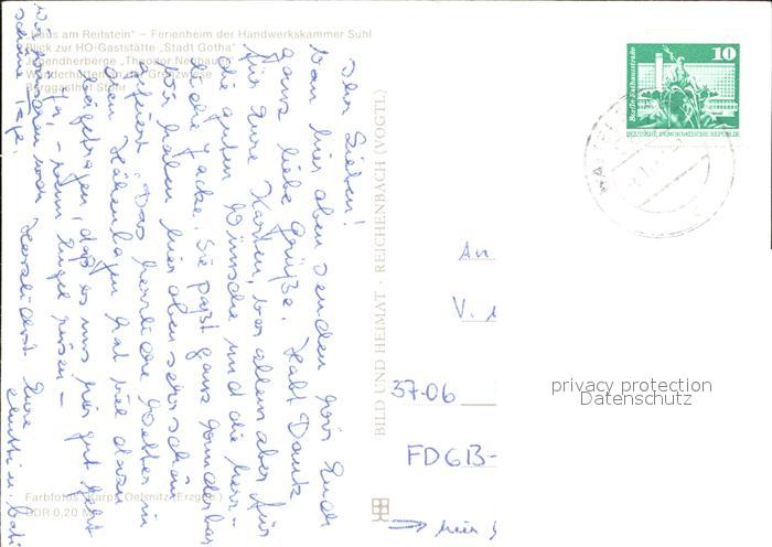 72422011 alte Postkarte Grosser Inselsberg Haus am Reitstein Ferienheim HO Gaststaette Stadt Gotha Jugendherberge Wanderhuetten Grenzwiese Berggasthof postalisch gelaufen Erhaltung siehe scans KatCode: 11110016066014