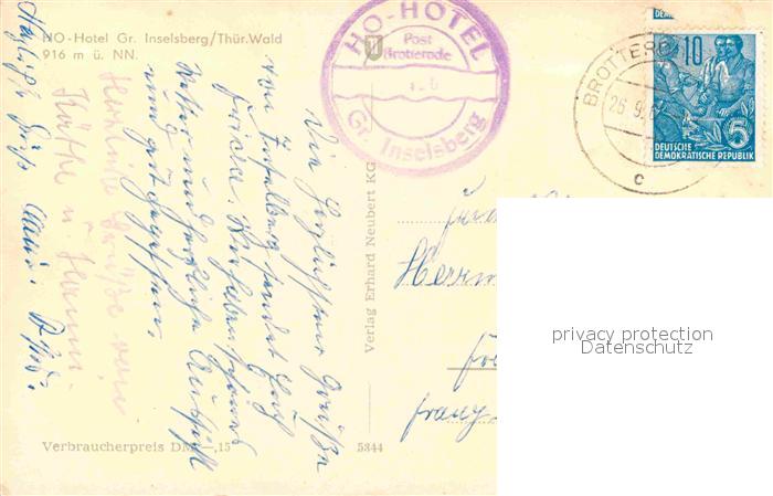 72710498 alte Postkarte Grosser Inselsberg HO Hotel Berggaststaette postalisch gelaufen Erhaltung siehe scans [FriedD77] KatCode: 11110016066014