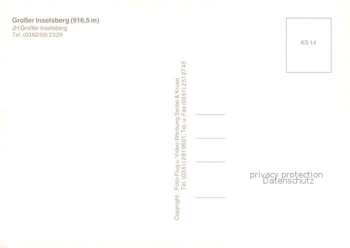 73723454 Grosser Inselsberg Jugendherberge Inselsberg Sendemast Fliegeraufnahme Gaststaette postalisch nicht gelaufen Erhaltung siehe scans [WerneD78] KatCode: 11110016066014