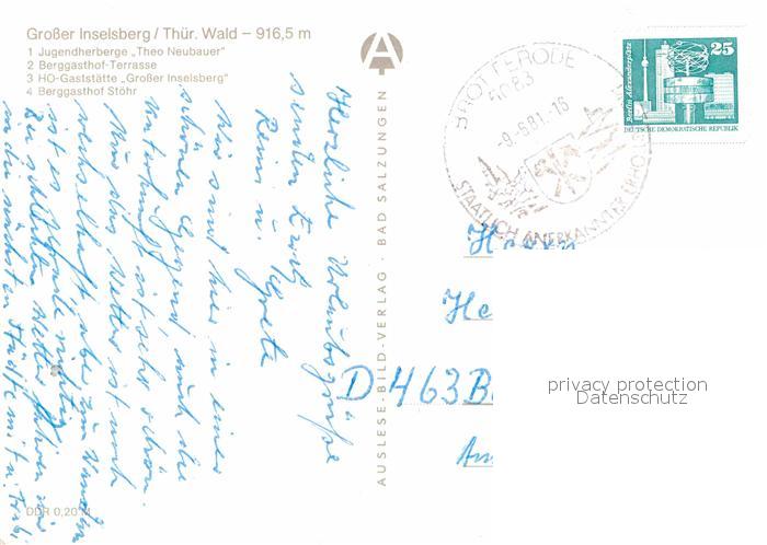 72903839 alte Postkarte Grosser Inselsberg Jugendherberge Theo Neubauer Berggasthof Terrasse HOG Gr Inselsberg Berggasthof Stoehr postalisch gelaufen Erhaltung siehe scans [FriedD77] KatCode: 11110016066014