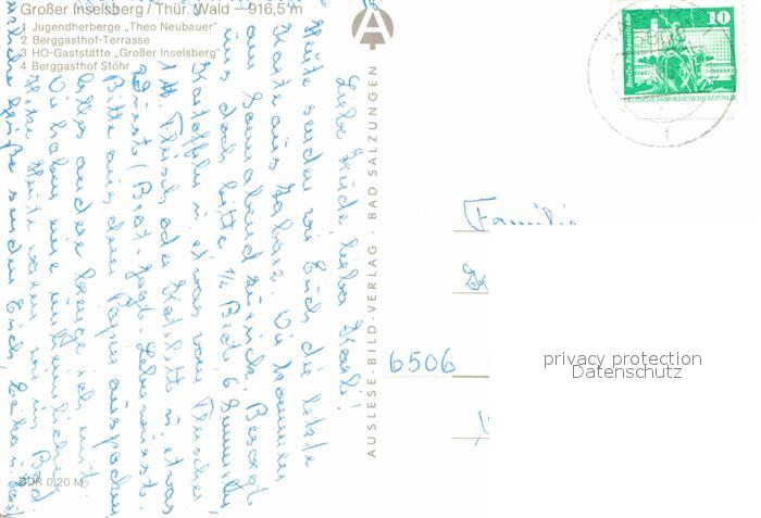 72627724 alte Postkarte Grosser Inselsberg Jugendherberge Theo Neubauer Berggasthof Terrasse HOG Grosser Inselsberg Berggasthof Stoehr postalisch gelaufen Erhaltung siehe scans [WerneD78] KatCode: 11110016066014