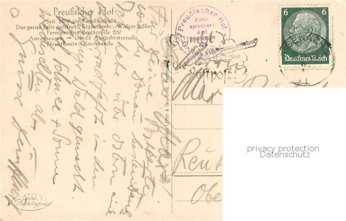 73770985 alte Postkarte Grosser Inselsberg Preussischer Hof postalisch gelaufen Erhaltung siehe scans [WerneD78] KatCode: 11110016066014