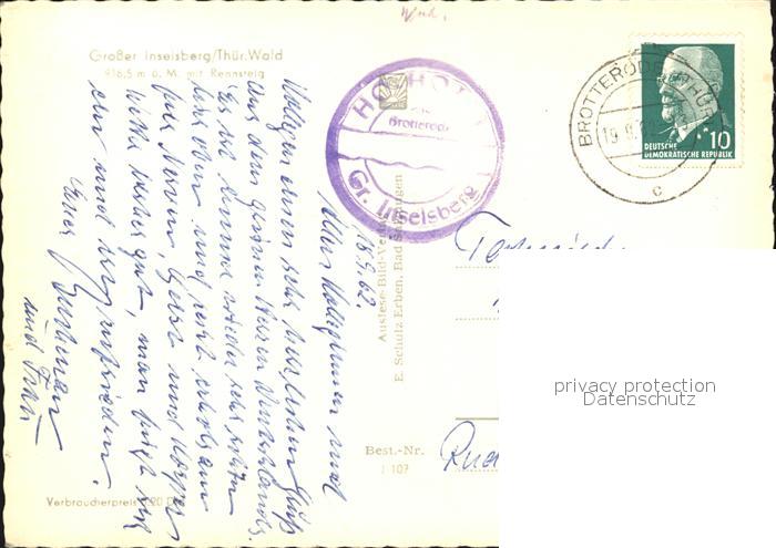 72506327 alte Postkarte Grosser Inselsberg Rennsteig postalisch gelaufen Erhaltung siehe scans KatCode: 11110016066014