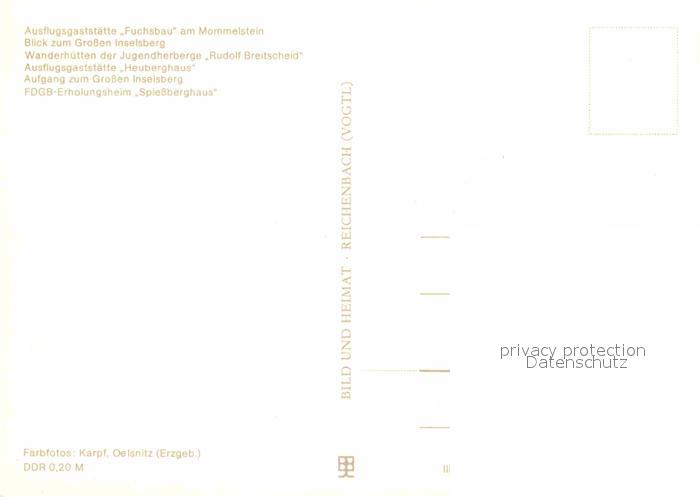72742106 Grosser Inselsberg Restaurant Fuchsbau am Mommelstein Heuberghaus postalisch nicht gelaufen Erhaltung siehe scans [LiesaD40] KatCode: 11110016066014