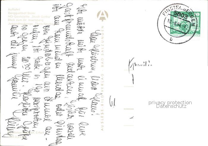 72467387 alte Postkarte Grosser Inselsberg Sendeturm Gasthaus Stoehr postalisch gelaufen Erhaltung siehe scans KatCode: 11110016066014