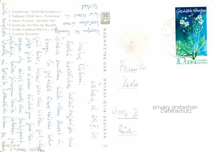 72652103 alte Postkarte Grosser Inselsberg und Umgebung Schloss FDGB Heim Kurhotel Trusetaler Wasserfall postalisch gelaufen Erhaltung siehe scans [FriedD77] KatCode: 11110016066014