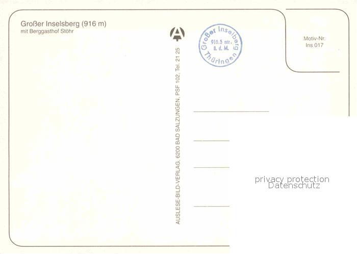 72696742 Grosser Inselsberg Wandern im Thueringer Wald Touristenbahn Berggasthof Sender postalisch nicht gelaufen Erhaltung siehe scans [FriedD77] KatCode: 11110016066014