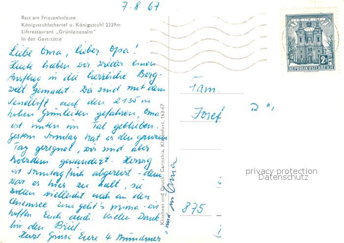73062239 alte Postkarte Grosser Koenigstuhl Friesenholzsee Koenigsstuhlscharte Liftrestaurant Gruenleitenalm postalisch gelaufen Erhaltung siehe scans [FriedD77] KatCode: 11390