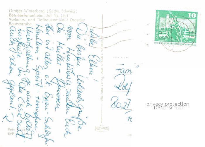 72641162 alte Postkarte Grosser Winterberg Betriebsferienheim VEB Dresden Bauernstube postalisch gelaufen Erhaltung siehe scans [WerneD78] KatCode: 11110014287020