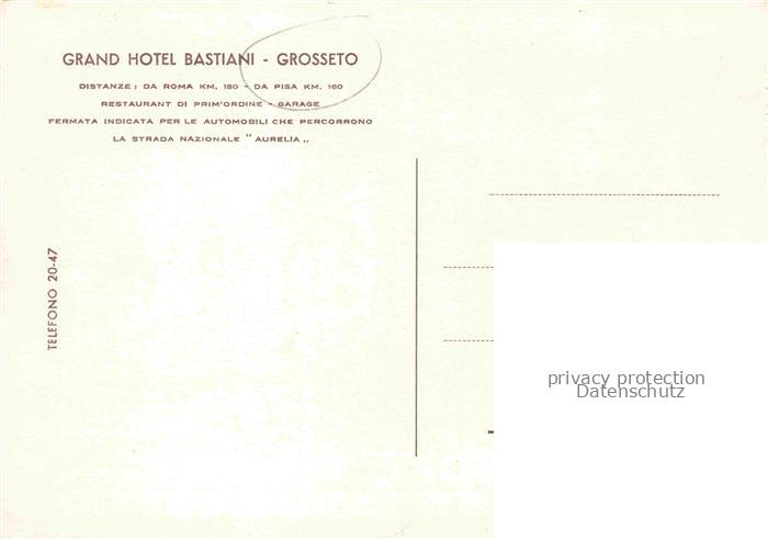 74017257 Grosseto Toscana IT Grand Hotel Bastiani postalisch nicht gelaufen Erhaltung siehe scans [WerneD78] KatCode: 11240
