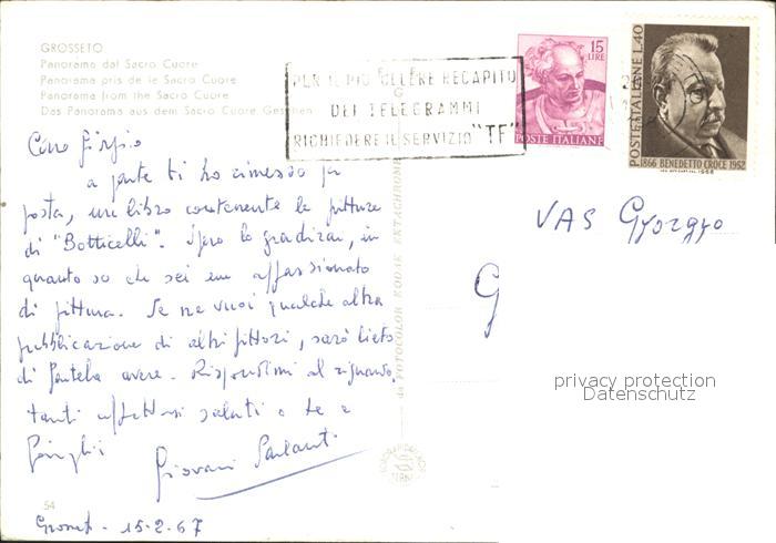 old postcard Grosseto Toscana Panorama dal Sacro Cuore postalisch gelaufen Erhaltung siehe scans