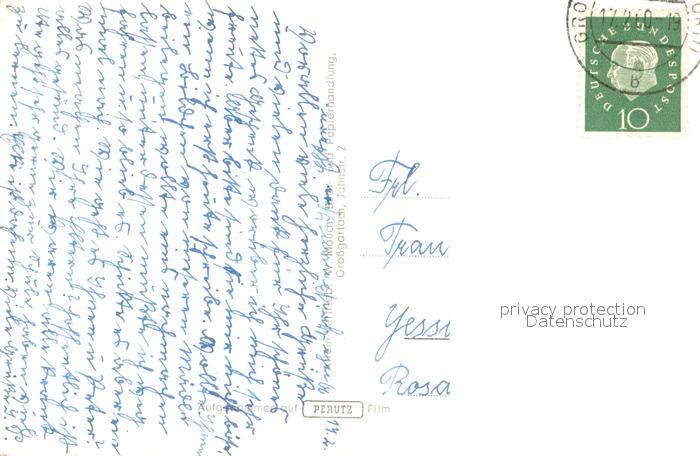 73644199 alte Postkarte Grossgartach Kirche Heuchelberger Warte Kindergarten Gartenschule Brunnen Rathaus Freibad postalisch gelaufen Erhaltung siehe scans [FriedD77] KatCode: 11110008125058