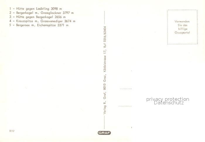 73245727 Grossglockner Bergerseehuette Lasoerling Bergerkogel Kreuzspitze Grossvenediger postalisch nicht gelaufen Erhaltung siehe scans [KathaD81] KatCode: 11390