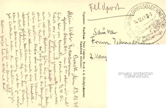 43022936 alte Postkarte Grossglockner Bruecke Grossglocknerstrasse postalisch gelaufen Feldpost Erhaltung siehe scans [KathaD81] KatCode: 11390