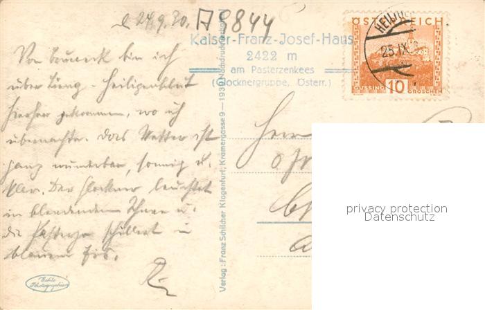 43261915 alte Postkarte Grossglockner Franz-Josef-Haus am Pasterzenkees postalisch gelaufen Erhaltung siehe scans [LiesaD40] KatCode: 11390