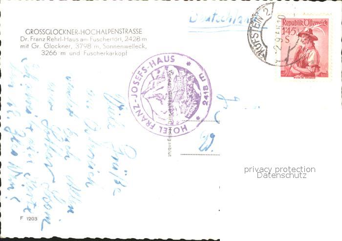 71962121 alte Postkarte Grossglockner Hochalpenstrasse Dr. Franz Rehrl-Haus postalisch gelaufen Erhaltung siehe scans KatCode: 11390