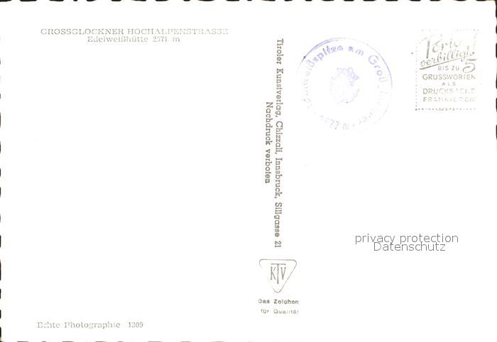 72092837 Grossglockner Hochalpenstrasse Edelweisshuette postalisch nicht gelaufen Erhaltung siehe scans KatCode: 11390