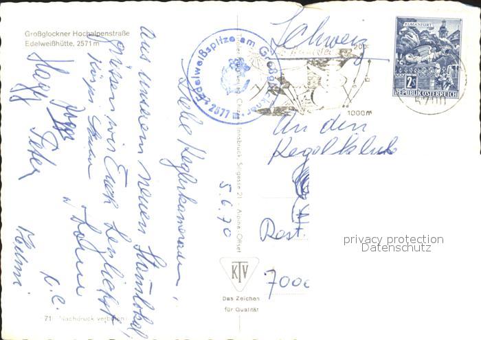 72381679 alte Postkarte Grossglockner Hochalpenstrasse Edelweisshuette postalisch gelaufen Erhaltung siehe scans KatCode: 11390