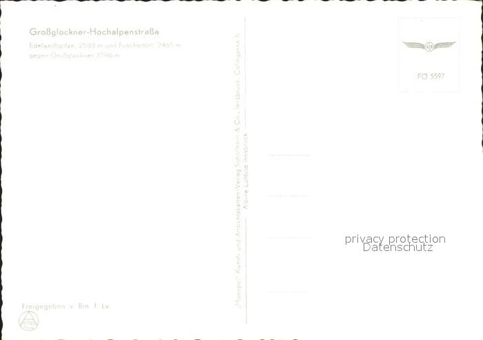 71907360 Grossglockner Hochalpenstrasse Edelweissspitze Fuschertoerl Fliegeraufnahme postalisch nicht gelaufen Erhaltung siehe scans KatCode: 11390