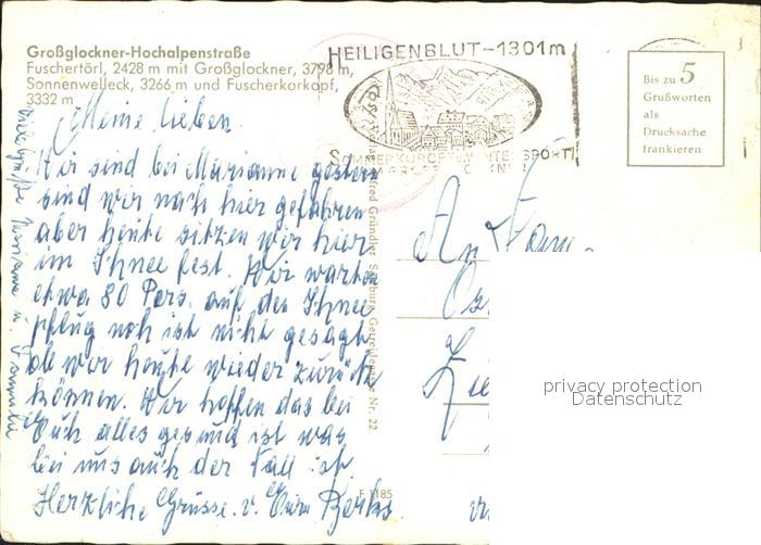 72377238 alte Postkarte Grossglockner Hochalpenstrasse Fuschertoerl Sonnenwelleck postalisch gelaufen Erhaltung siehe scans KatCode: 11390
