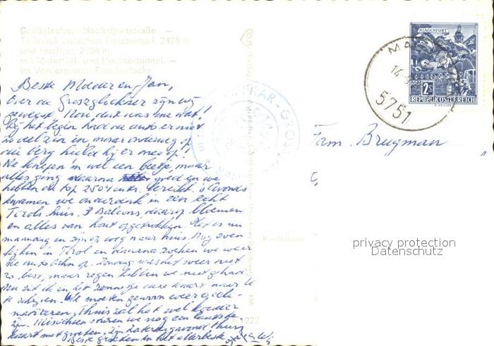 72093070 alte Postkarte Grossglockner Hochalpenstrasse mit Mittertoerl Hochtortunnel und Fuscherlacke postalisch gelaufen Erhaltung siehe scans KatCode: 11390