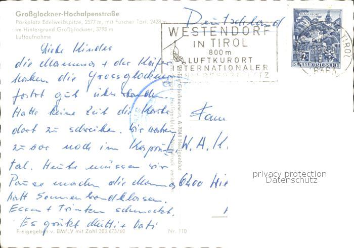 71872045 alte Postkarte Grossglockner Hochalpenstrasse Parkplatz Edelweissspitze Fuscher Toerl Fliegeraufnahme postalisch gelaufen Erhaltung siehe scans KatCode: 11390