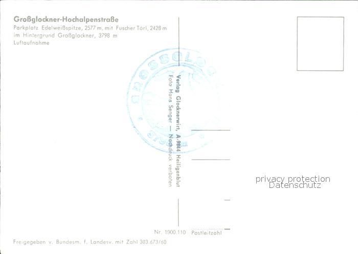 71872148 Grossglockner Hochalpenstrasse Parkplatz Edelweissspitze Fuscher Toerl Fliegeraufnahme postalisch nicht gelaufen Erhaltung siehe scans KatCode: 11390