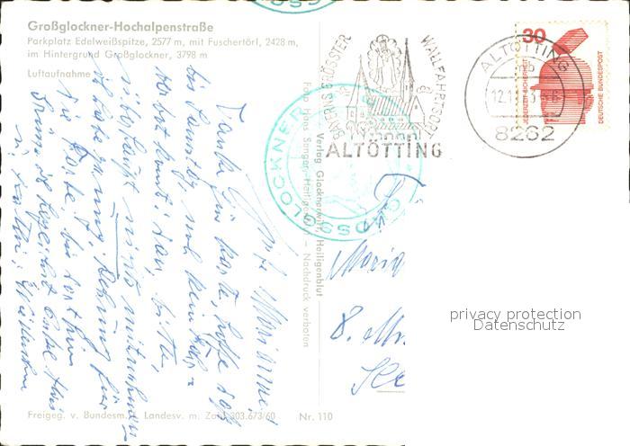 71872208 alte Postkarte Grossglockner Hochalpenstrasse Parkplatz Edelweissspitze Fuschertoerl Fliegeraufnahme postalisch gelaufen Erhaltung siehe scans KatCode: 11390