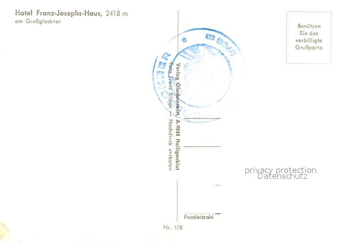 73281889 Grossglockner Hotel Franz Josephs Haus postalisch nicht gelaufen Erhaltung siehe scans [WerneD78] KatCode: 11390