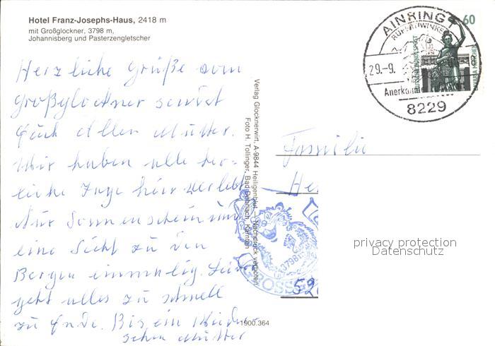 72257200 alte Postkarte Grossglockner Johannixberg Hotel Franz-Josephs-Haus postalisch gelaufen Erhaltung siehe scans KatCode: 11390
