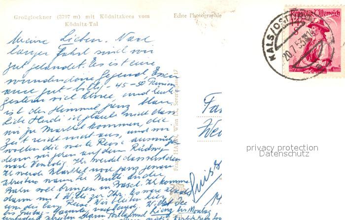 73363438 alte Postkarte Grossglockner Koednitzkees vom Koednitz Tal postalisch gelaufen Erhaltung siehe scans [WerneD78] KatCode: 11390