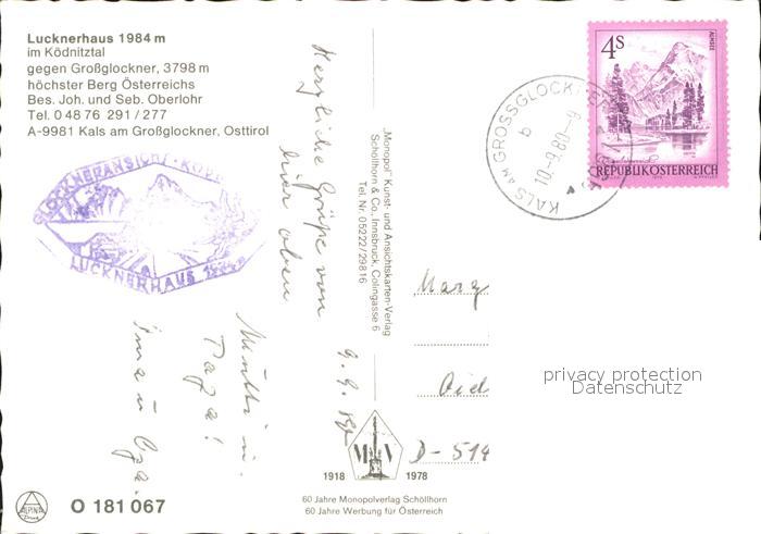 71908711 alte Postkarte Grossglockner Lucknerhaus Koednitztal postalisch gelaufen Erhaltung siehe scans KatCode: 11390