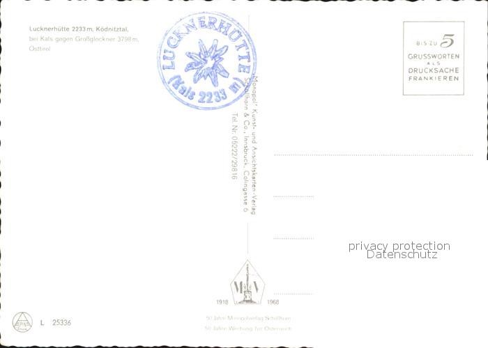 72568483 Grossglockner Lucknerhuette Koednitztal postalisch nicht gelaufen Erhaltung siehe scans [KathaD79] KatCode: 11390