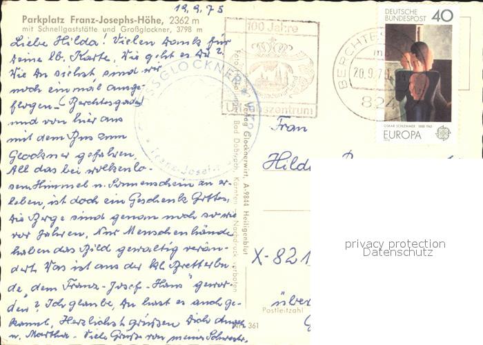 72420325 alte Postkarte Grossglockner Parkplatz Franz-Josephs-Hoehe Schnellgaststaette postalisch gelaufen Erhaltung siehe scans KatCode: 11390