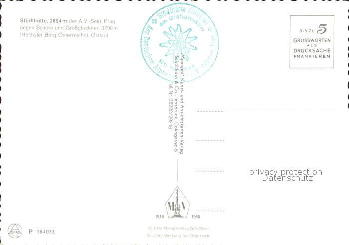 72381591 Grossglockner Stuedlhuette postalisch nicht gelaufen Erhaltung siehe scans KatCode: 11390