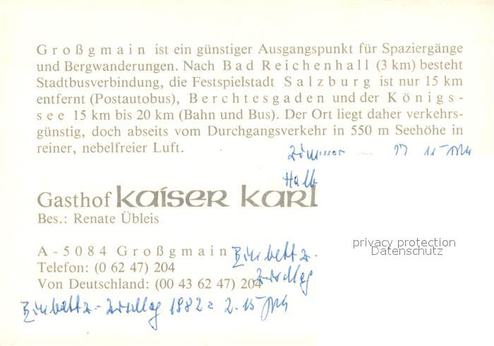 73688128 Grossgmain Gasthof Kaiser Karl Gastraum Fremdenzimmer postalisch nicht gelaufen Werbekarte (keine Postkarte) Erhaltung siehe scans [FriedD77] KatCode: 11390323050315