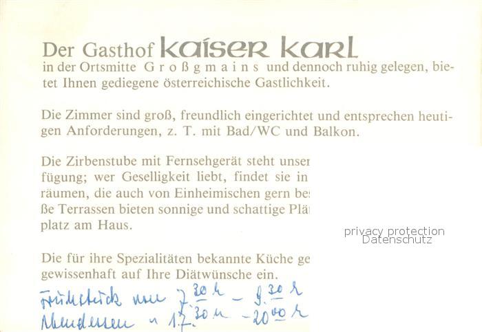 73688129 Grossgmain Gasthof Kaiser Karl postalisch nicht gelaufen Werbekarte (keine Postkarte) Erhaltung siehe scans [FriedD77] KatCode: 11390323050315