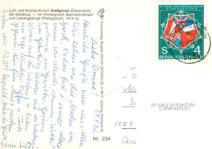 72984611 alte Postkarte Grossgmain mit Lattengebirge Predigtstuhl postalisch gelaufen Erhaltung siehe scans [LiesaD40] KatCode: 11390323050315