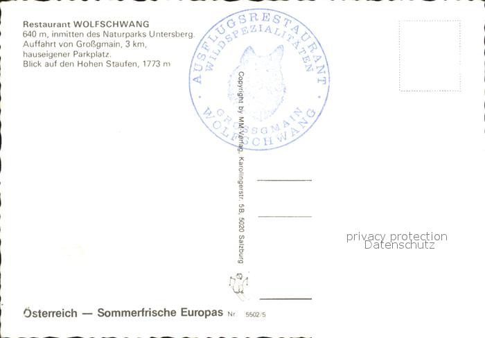 72468238 Grossgmain Restaurant Wolfschwang Naturpark Untersberg Hoher Staufen Winterpanorama postalisch nicht gelaufen Erhaltung siehe scans KatCode: 11390323050315