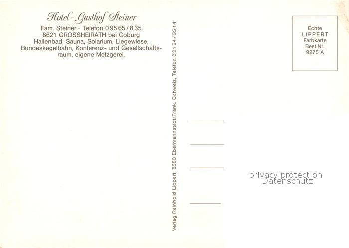 73047434 Grossheirath Hotel Gasthof Steiner Bar postalisch nicht gelaufen Erhaltung siehe scans [WerneD78] KatCode: 11110009473132