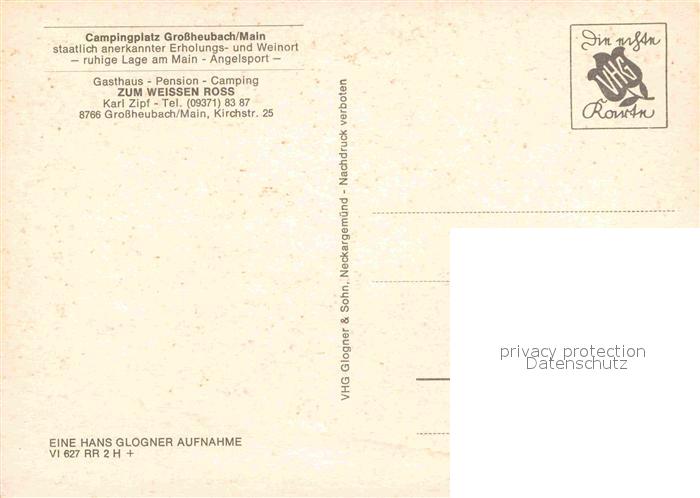 72825781 Grossheubach Campingplatz Gasthaus Pension Camping Zum Weissen Ross postalisch nicht gelaufen Erhaltung siehe scans [LiesaD40] KatCode: 11110009676125