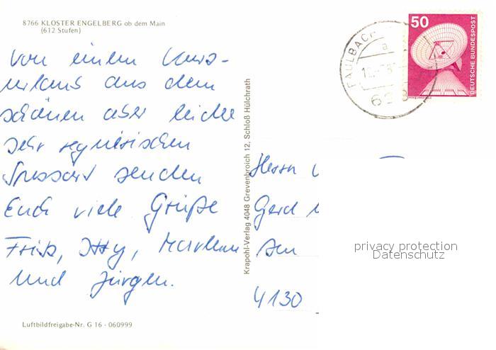72900064 alte Postkarte Grossheubach Fliegeraufnahme Kloster Engelberg postalisch gelaufen Erhaltung siehe scans [AndreD76] KatCode: 11110009676125