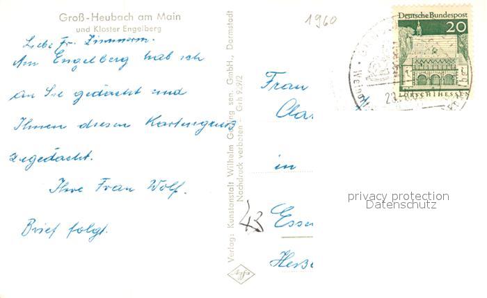 73136906 alte Postkarte Grossheubach Kloster Engelberg postalisch gelaufen Erhaltung siehe scans [FriedD77] KatCode: 11110009676125