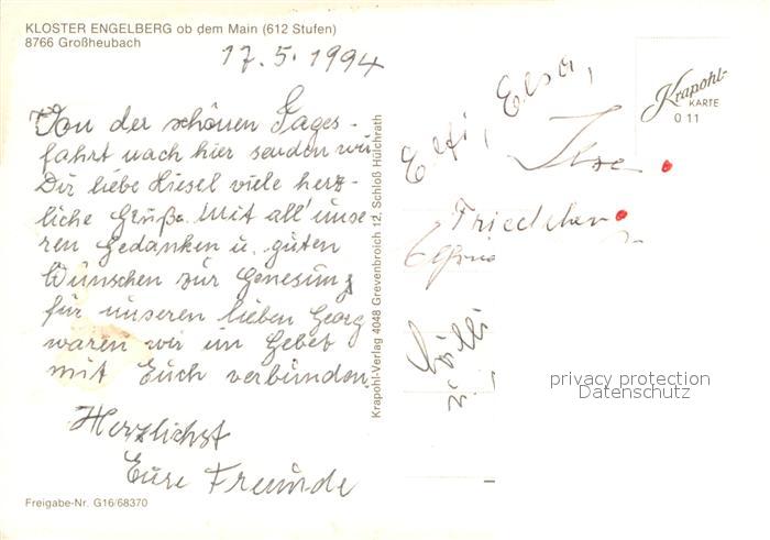 73617086 Grossheubach Kloster Engelberg Fliegeraufnahme postalisch nicht gelaufen Erhaltung siehe scans [WerneD78] KatCode: 11110009676125