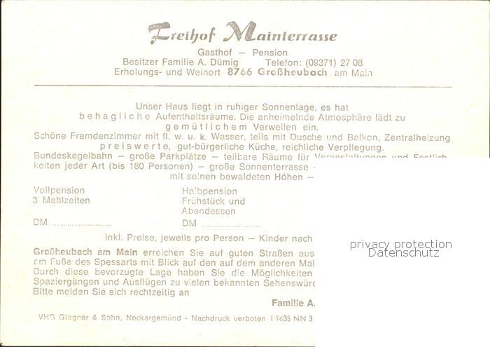 72148491 Grossheubach Mainterrasse Freihof Pension postalisch nicht gelaufen Werbekarte (keine Postkarte) Erhaltung siehe scans KatCode: 11110009676125